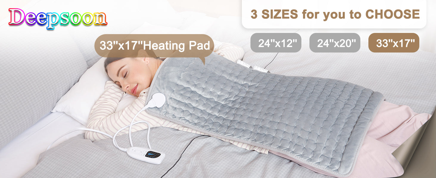 Heating Pad,Electric Heating Pads for Back,Hot Heated Pad for Abdomen,Shoulder,Knee,Multiple Temp and Auto Shut Off(Light Gray, 33''×17'')